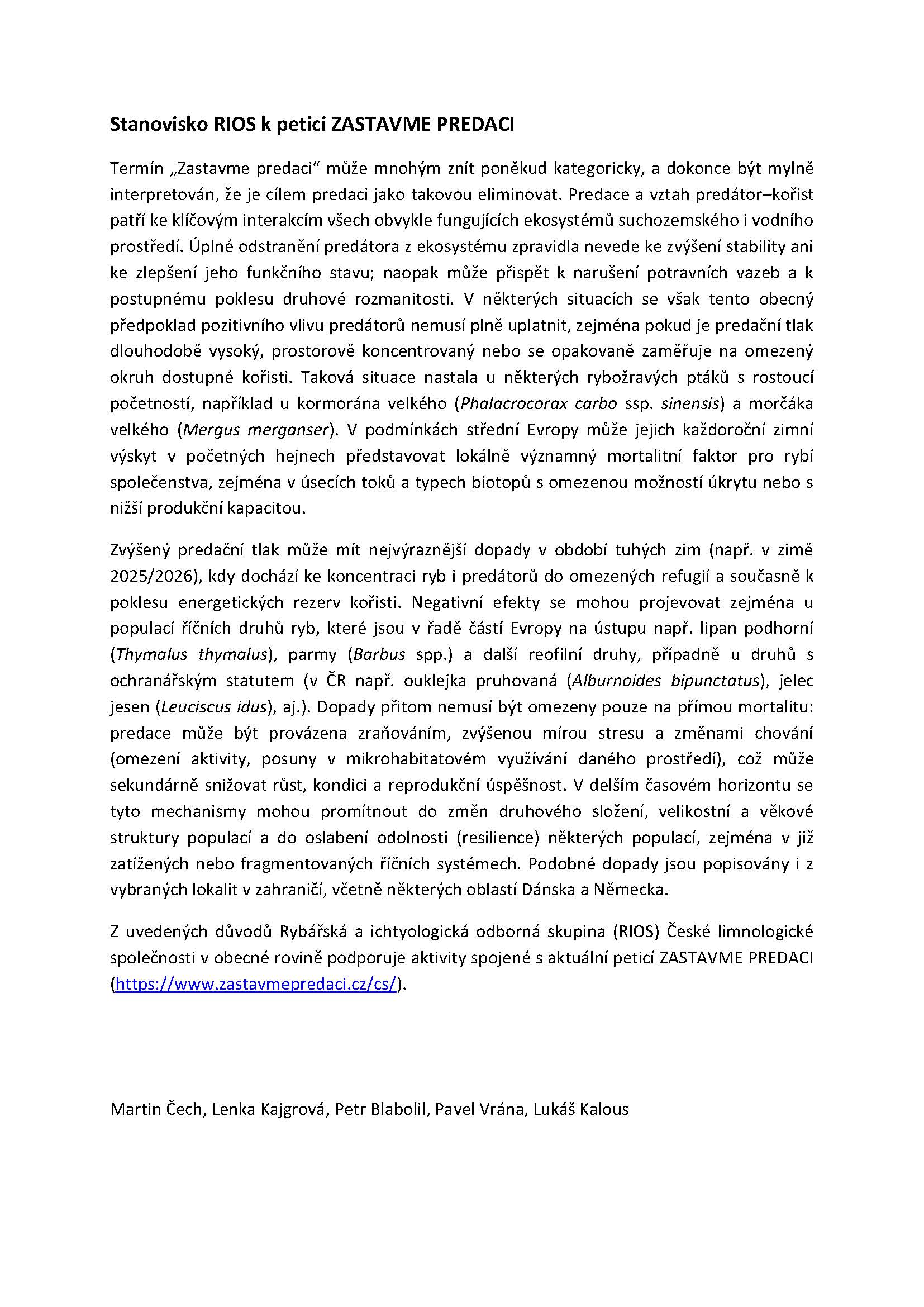 Stanovisko RIOS k petici ZASTAVME PREDACI